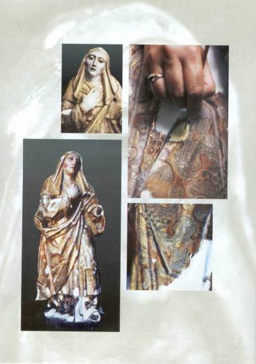 de la madera (base) bordes del traje y parte posterior de la capa La policromía